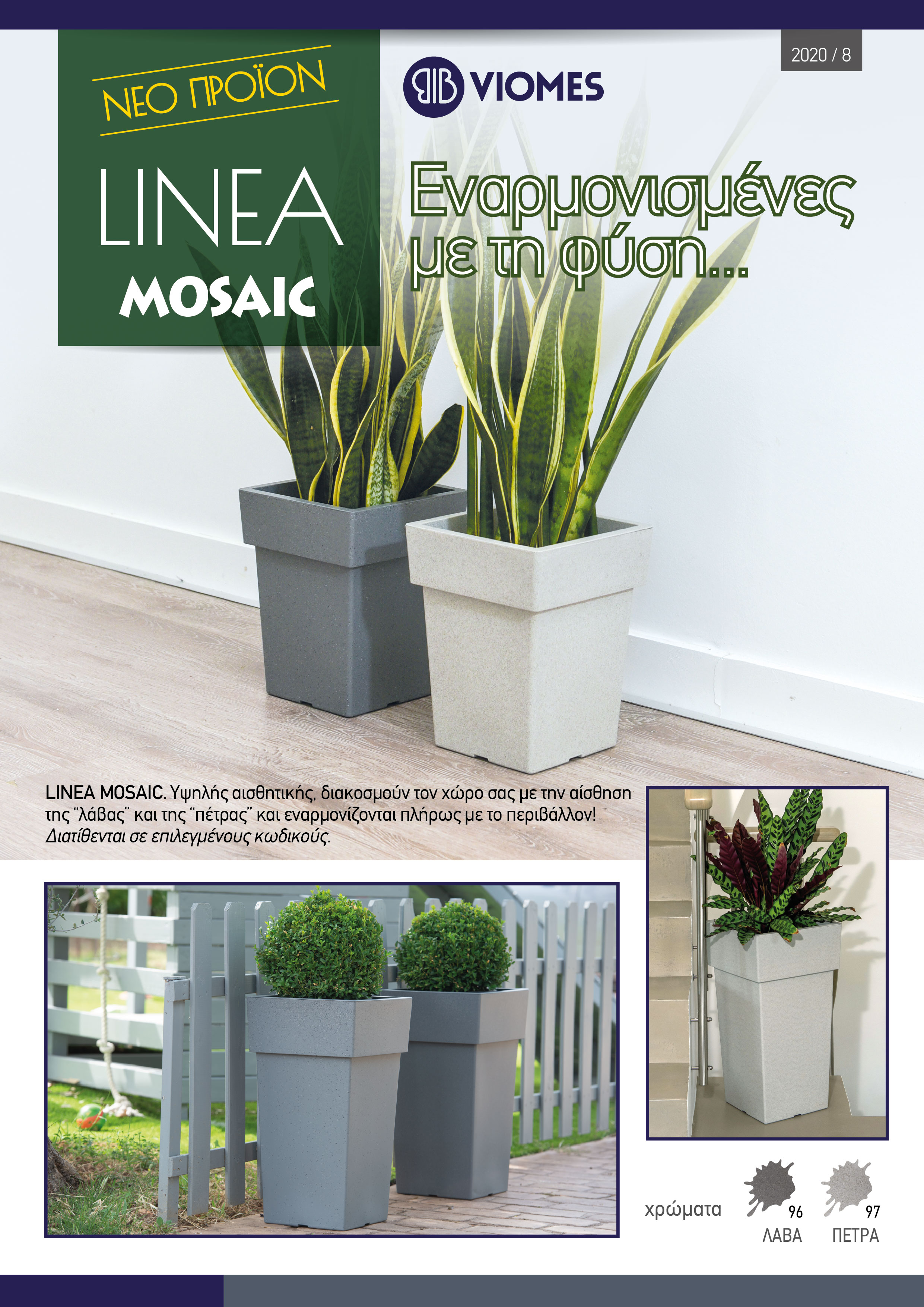 Γλάστρα LINEA MOSAIC τετράγωνη χαμηλή σε δύο διαφορεικά χρώματα.